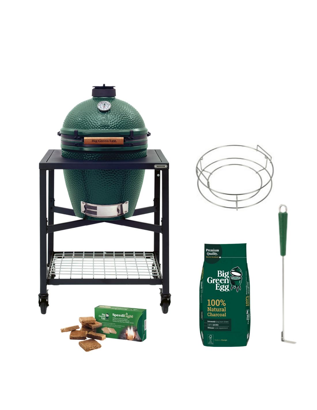 - Charbon de bois Big Green Egg (9 kg, qualité premium) : Allumage rapide et chaleur homogène.